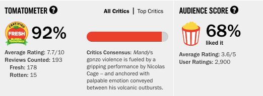 This looks batshit crazy. Evil demon biker gang, psychedelic occult imagery, chainsaw fighting, kidnapping, blacksmithing, at least one warlock, and Nicolas Cage losing his shit in the trailer. I bet he loses his shit so much more in the actual movie! Mandy is doing the most.