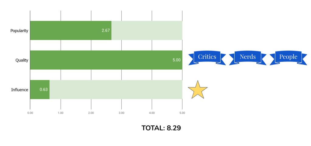 - Quality – 1) Critical Reception: The film’s Metascore , 2) Fanaticism: the percentage of Letterboxd nerds who rated the film 4 stars or higher, and 3) General Reception: the average of critics’ and audiences’ ratings on Rotten Tomatoes