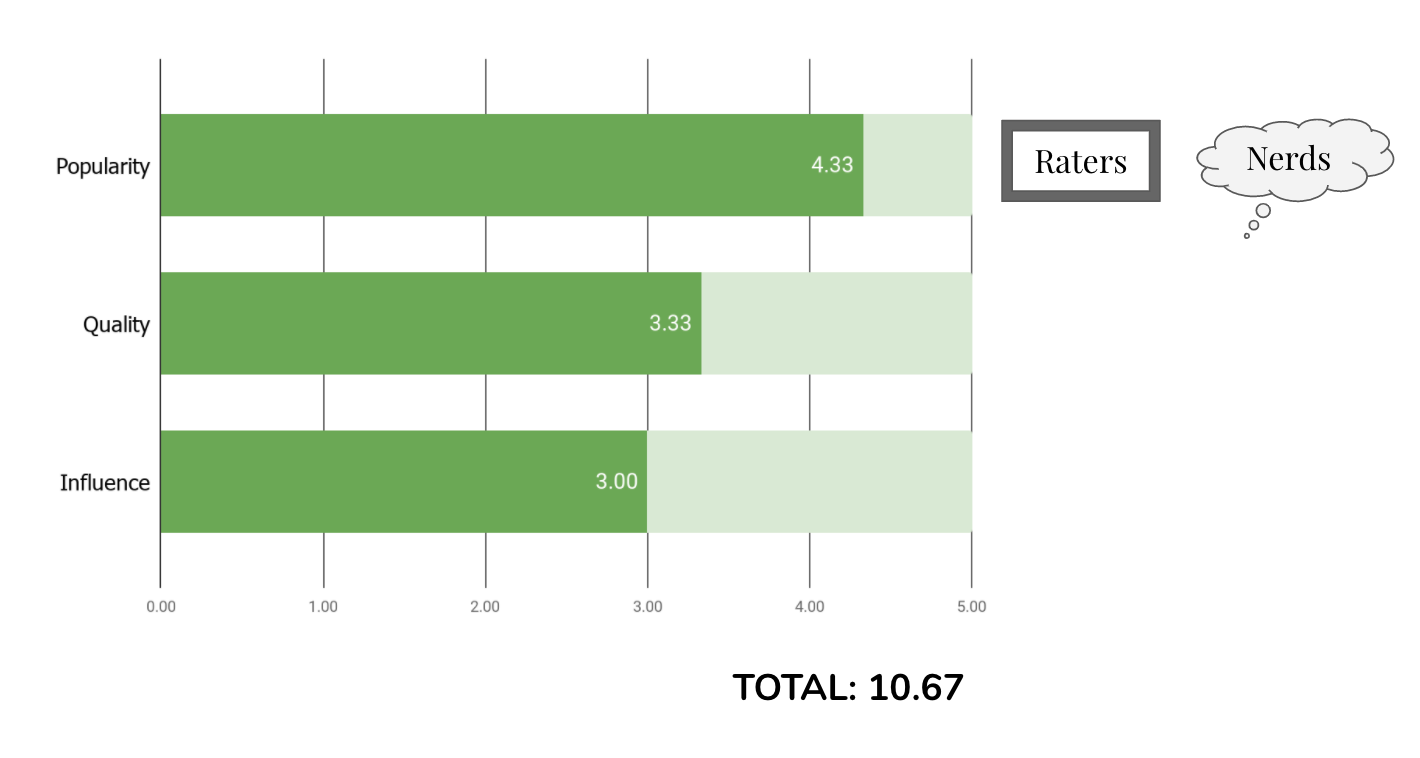 - Popularity – 1) Box Office: The amount of money the film made in its theatrical run (adjusted for inflation), 2) General Attention: the number of ratings the film received on IMDB, and 3) Nerd Attention: the number of ratings the film received on Letterboxd (a social platform for film nerds)